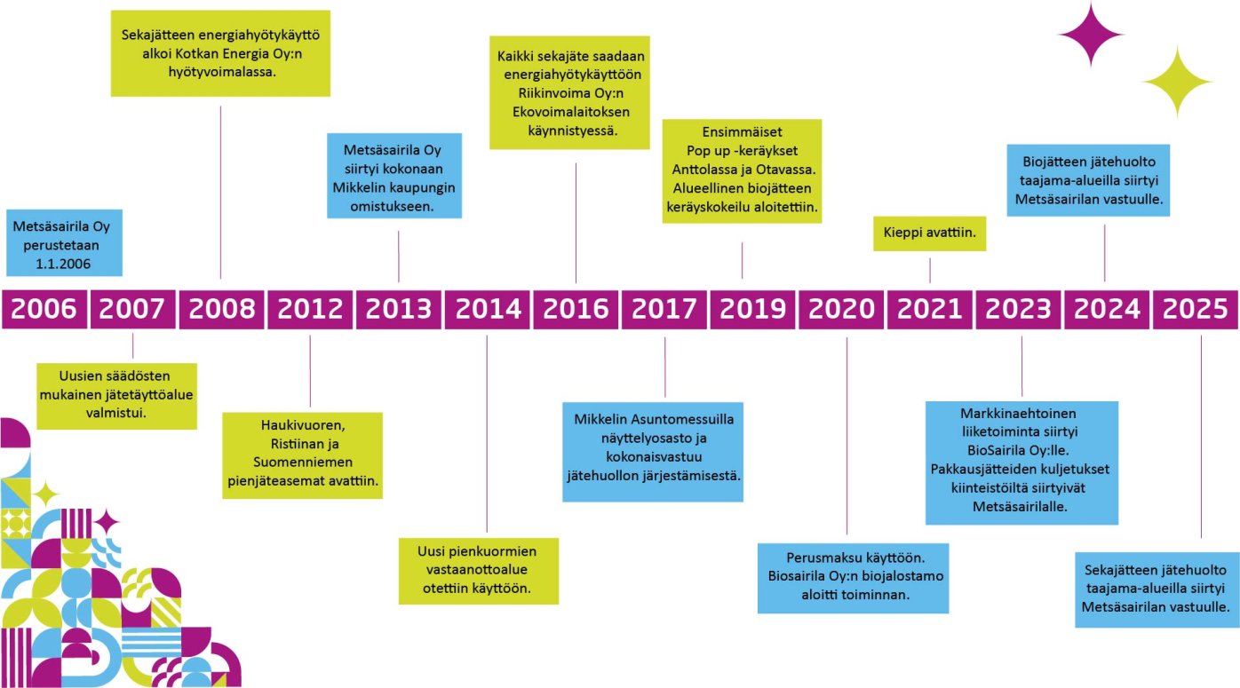 Aikajanalla on esitettynä tärkeitä tapahtumia vuosien varrelta.