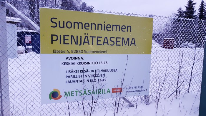 Vuoden 2022 alusta lähtien Suomenniemen pienjäteas... Vuoden 2022 alusta lähtien Suomenniemen pienjäteasema on avoinna keskiviikkoisin klo 15-18.