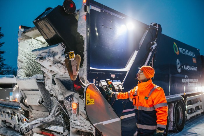 Pakkanen aiheuttaa haasteita jäteastioiden tyhjennyksiin
